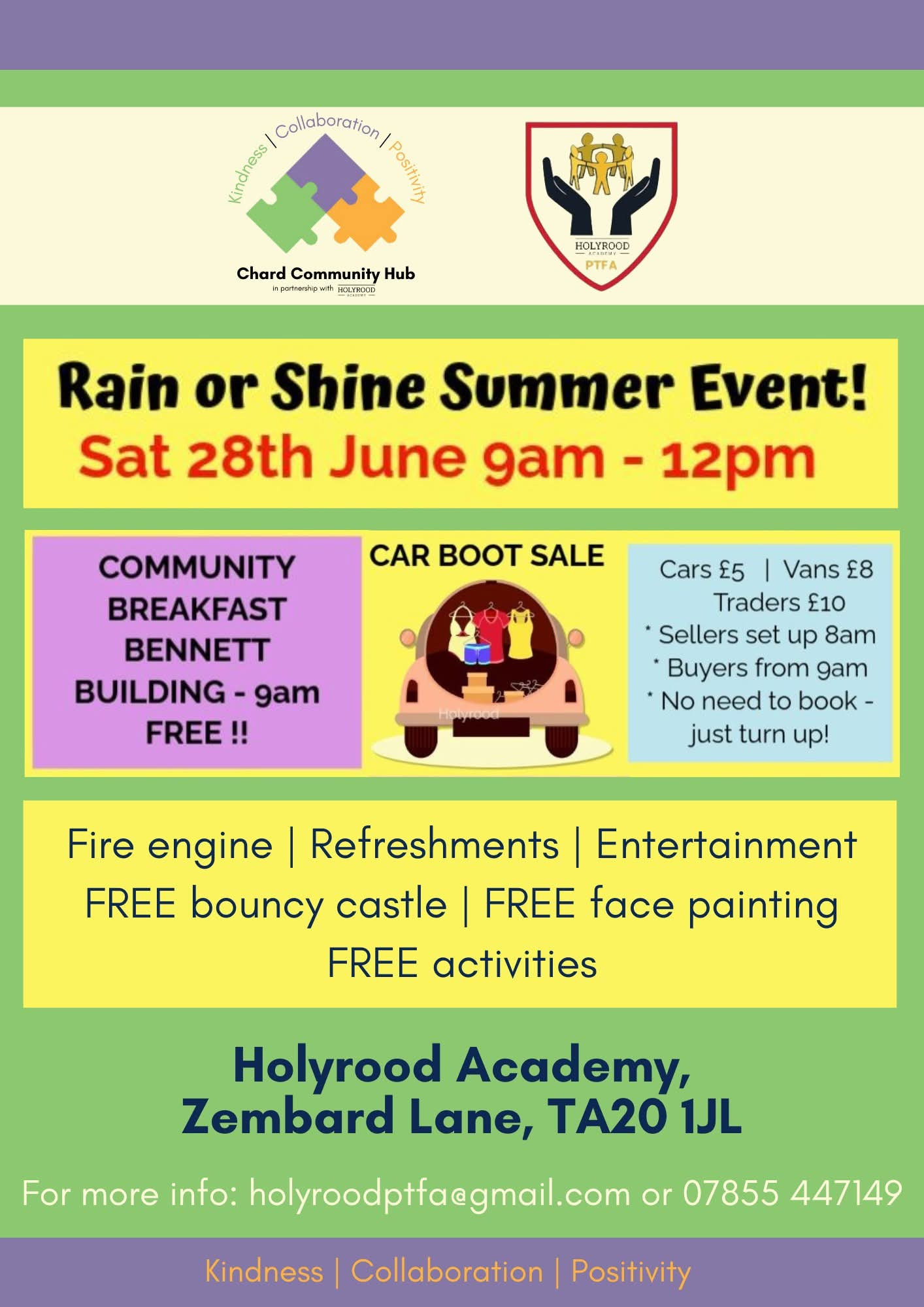 Holyrood Academy PTFA and Chard Community Hub are inviting residents of Chard and the surrounding area to a fun-filled summer event on Saturday, 28th June.